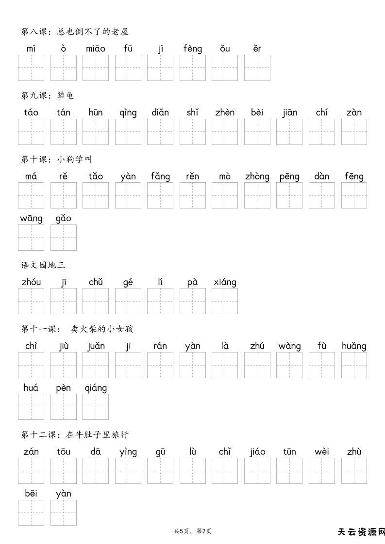 【默写-识字表】2025年三年级上册语文(含答案-天云资源网
