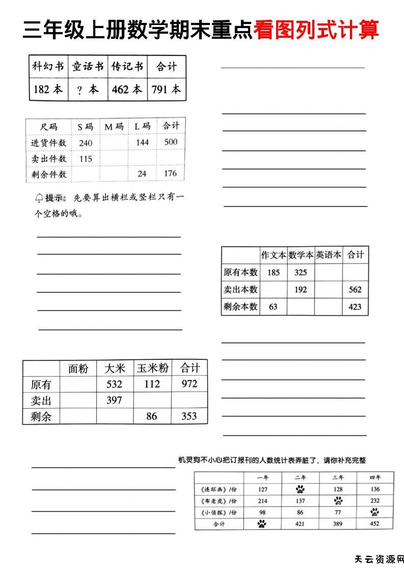 三上数学看图列式-天云资源网