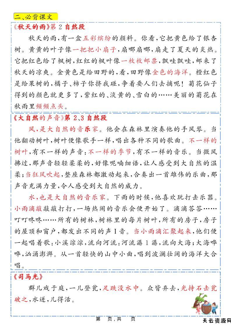 新版三上语文预习必背九大知识点汇总(15页)-天云资源网