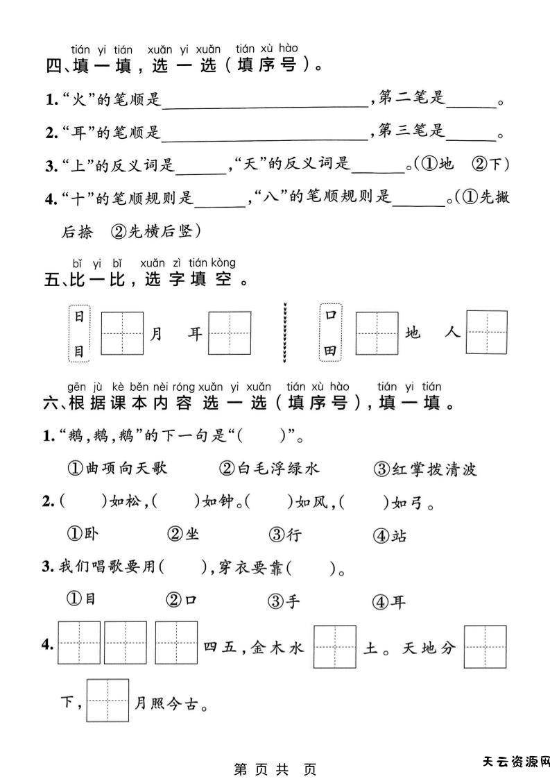 新一上语文1-8单元默写通关训练(16页)-天云资源网