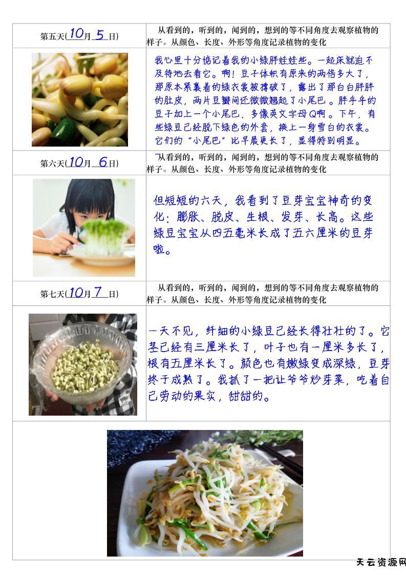 四上语文习作三:培育绿豆芽观察日记2《写观察日记》4页-天云资源网