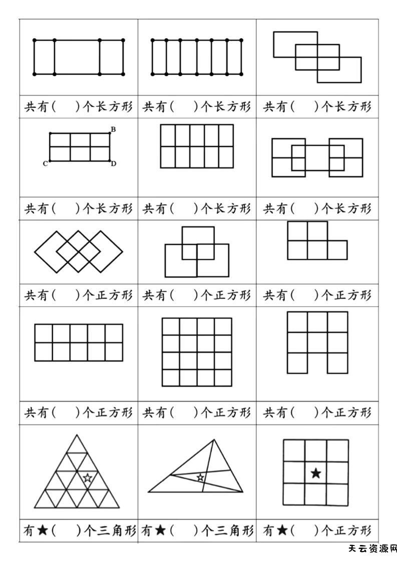 二上数学巧数图形专项练习+角的初步认识(10页)-天云资源网
