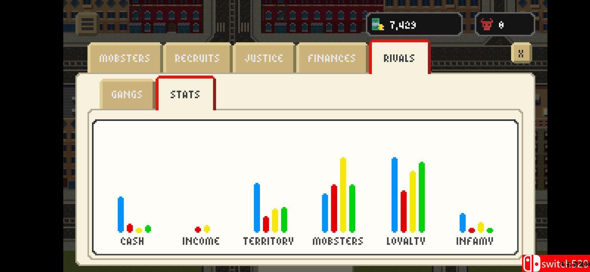 《像素黑帮:黑手党经理》是一款模拟经营类(SIM)游戏,《像素黑帮:黑手党经理》是一款黑帮主题的模拟经营游戏。你将建立自己的黑帮帝国——招募忠诚的帮派成员、升级武器与载具;策划抢劫、刺杀、敲诈保护费、收购物业并管理非法生意;潜入敌徒领地、行贿市长与警察局长、逃避诉讼并最终消灭对手、统治整座城市。switch520