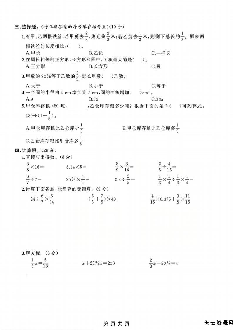 六年级上数学期中测试卷3《北师版》-天云资源网