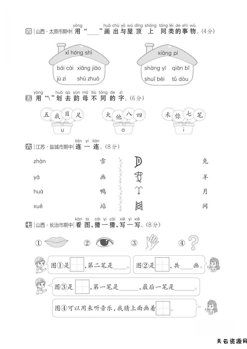 一年级上语文期中测试卷1-天云资源网