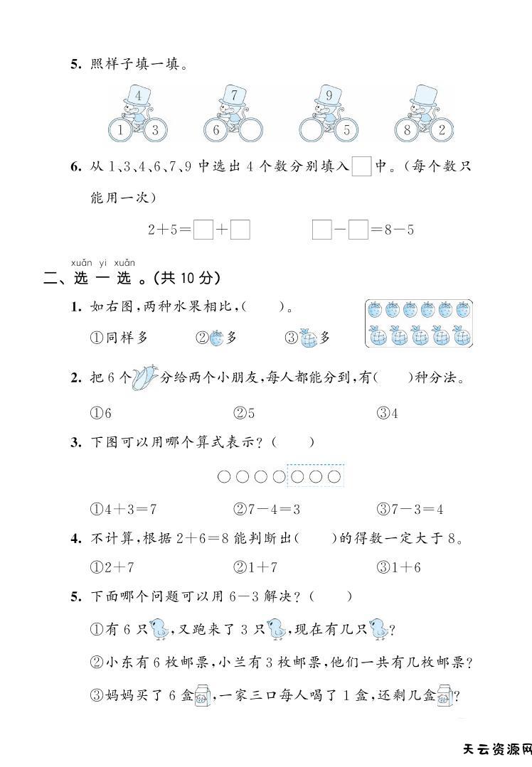 2025-2026学年人教版一上数学期中达标测试卷2(5页)-天云资源网