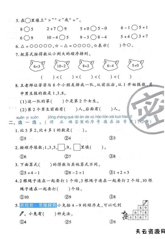 2025-2026学年人教版一上数学期中达标测试卷1(6页)-天云资源网