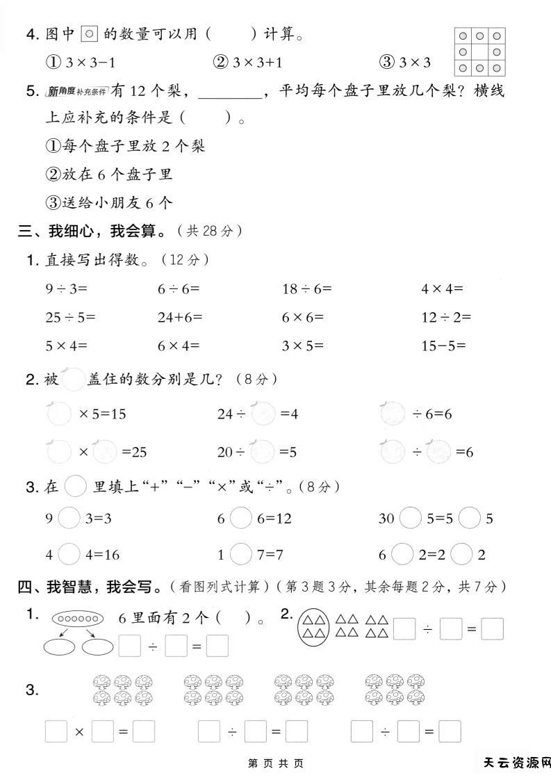 二年级上人教版数学期中模拟测试卷1-天云资源网