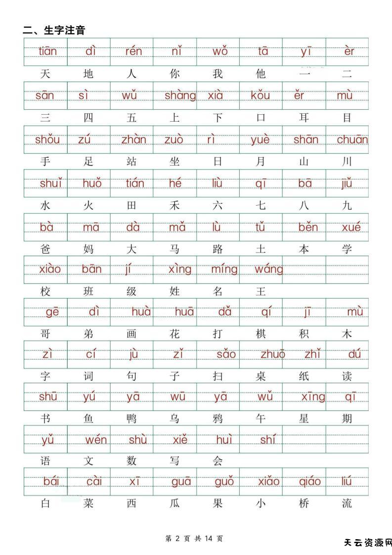 25新一上语文期中复习考点通关练习(含答案14页)-天云资源网