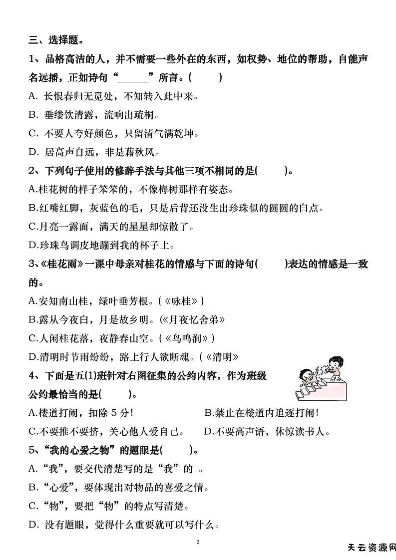 五年级上册语文期中复习语文园地专项练习(空白)-天云资源网