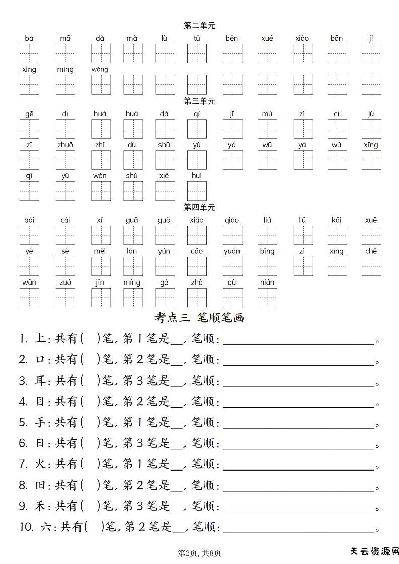 新一上语文期中六大考点专项训练(含答案16页)-天云资源网