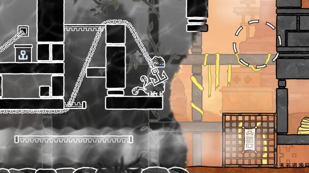 游戏里处处藏着制作组的巧妙心思。明明看起来是死路,切换世界后突然出现隐藏平台;彩色世界里湍急的河流无法渡过,切换到黑白世界竟变成了可以行走的透明桥梁。这种颠覆认知的设定让每个场景都充满惊喜,你永远猜不到下一个转角会遇见什么神奇机制。