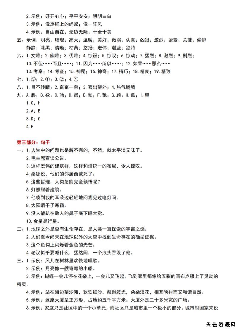 六上语文期中常考七大重点题型专项训练(答案)-天云资源网