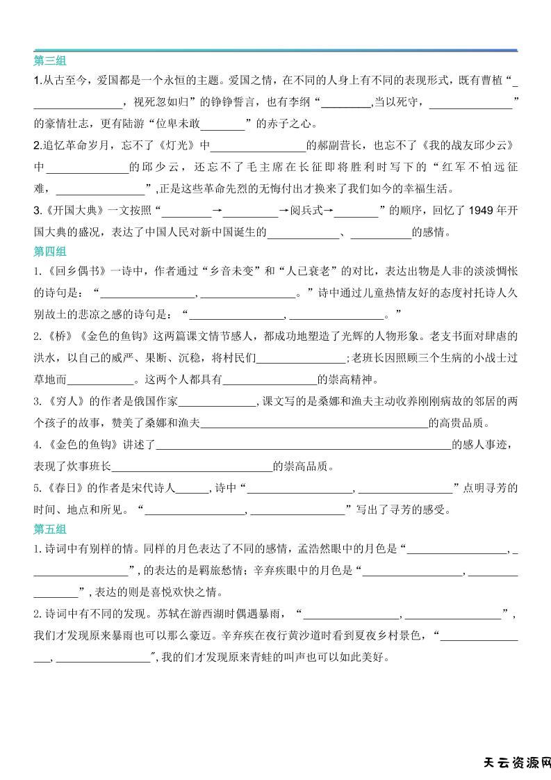 六上语文【期中情境填空·情境默写古诗词日积月累专项(空白版8页)】-天云资源网