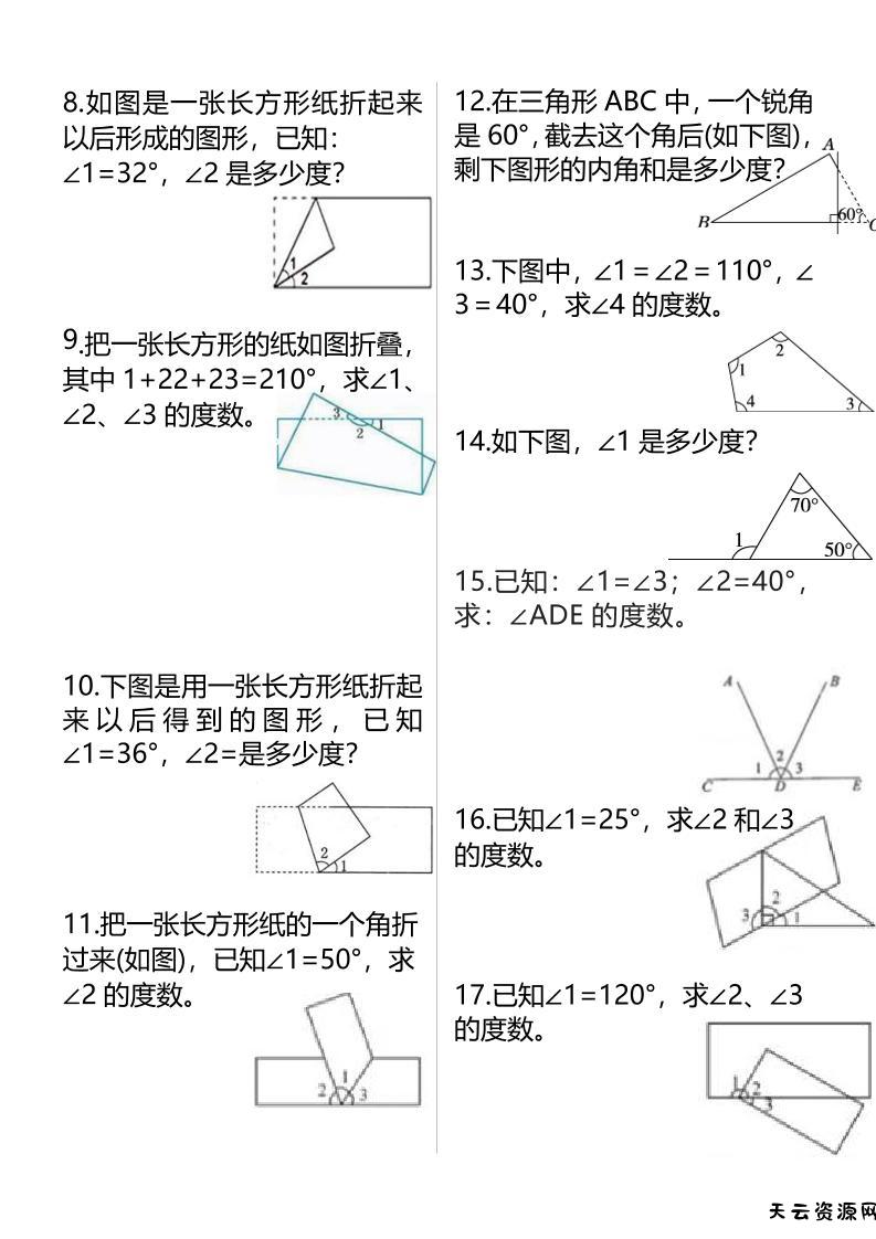 四上数学必考角的度量专项练习(含答案6页)-天云资源网