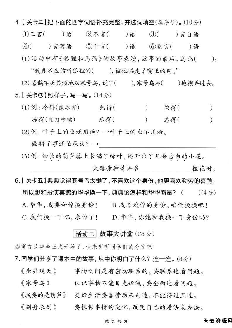 二年级上语文第五单元质量检测卷.2-天云资源网