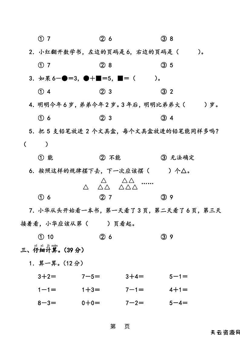 25年一上数学期中综合素养过关卷(含答案6页)-天云资源网
