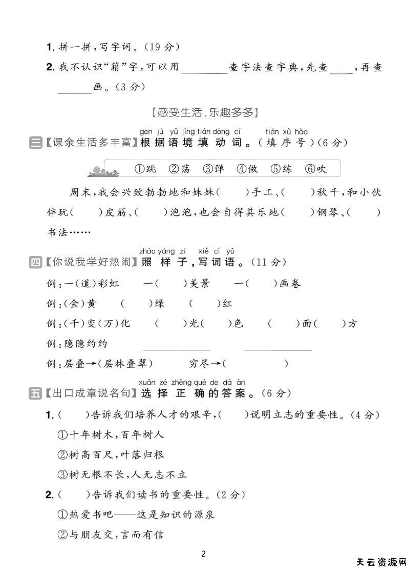 25学年二上语文期中素养达标卷(含答案5页)-天云资源网