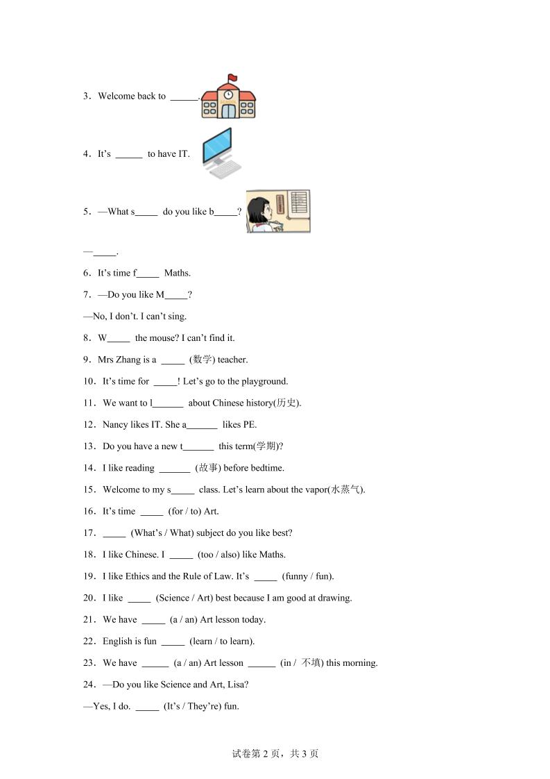2025-2026学年译林版(三起)(2024)英语四年级上册Unit1Ourschoolsubjects词汇(单元测试)-天云资源网