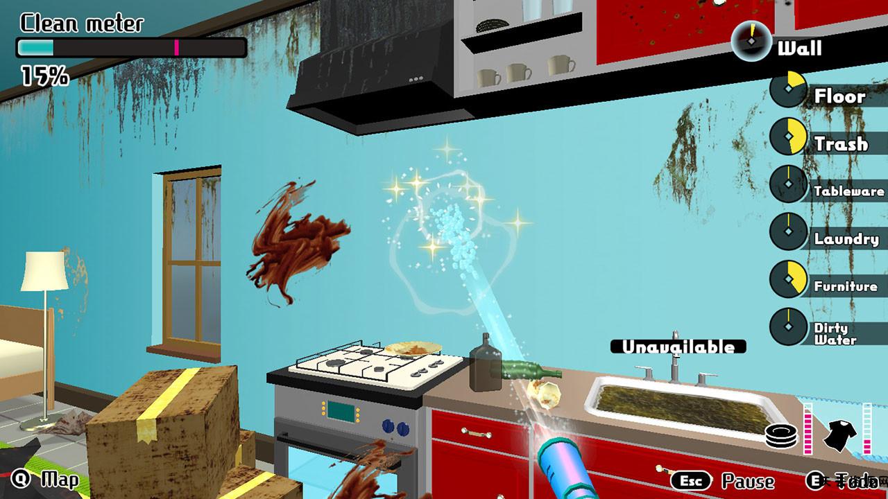 《房屋清洁的生存之道 House Cleaning Survival》Switch中文版NSP下载 – 含1.1.1补丁,化身专业清洁专家,将杂乱无章的空间恢复整洁。面对各种棘手的污渍和堆积如山的杂物,需要合理运用清洁工具与操作顺序。从布满油污的厨房到堆满杂物的车库,每个场景都需要不同的清理策略。