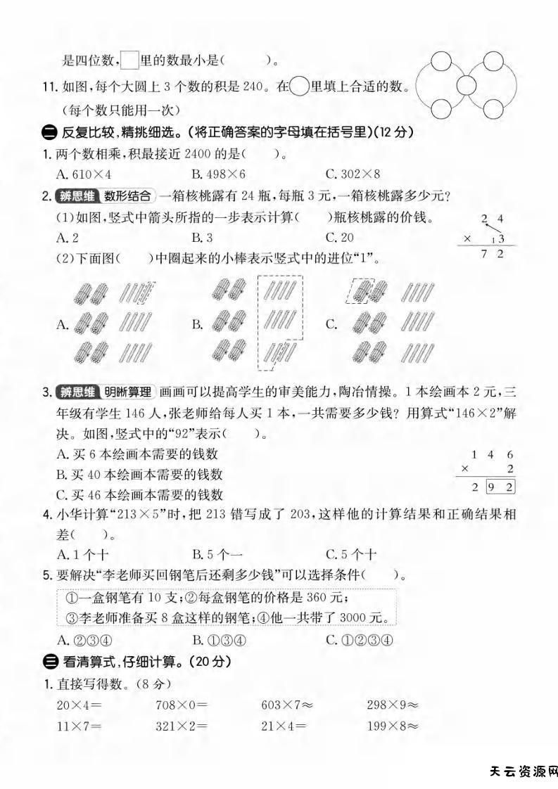 三年级上数学第五单元拔尖测试卷3《青岛63版》1-天云资源网