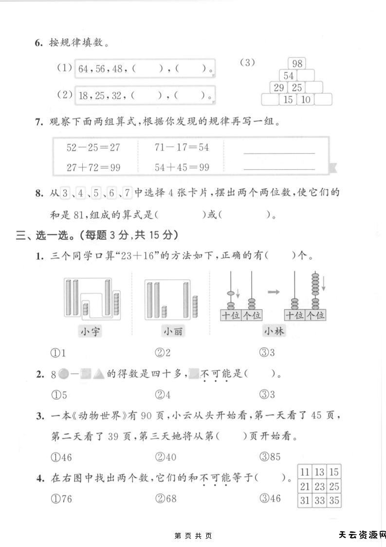 二年级上数学第五单元拔尖测试卷2《苏教版》-天云资源网