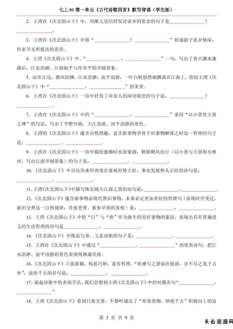 七年级上语文第1单元《古代诗歌四首》默写背诵-天云资源网