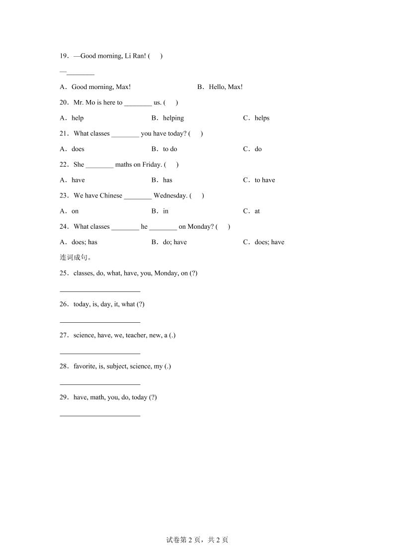 2025-2026学年北师大版(2024)英语四年级上册Unit1BacktoschoolLesson2基础练习(同步练)-天云资源网