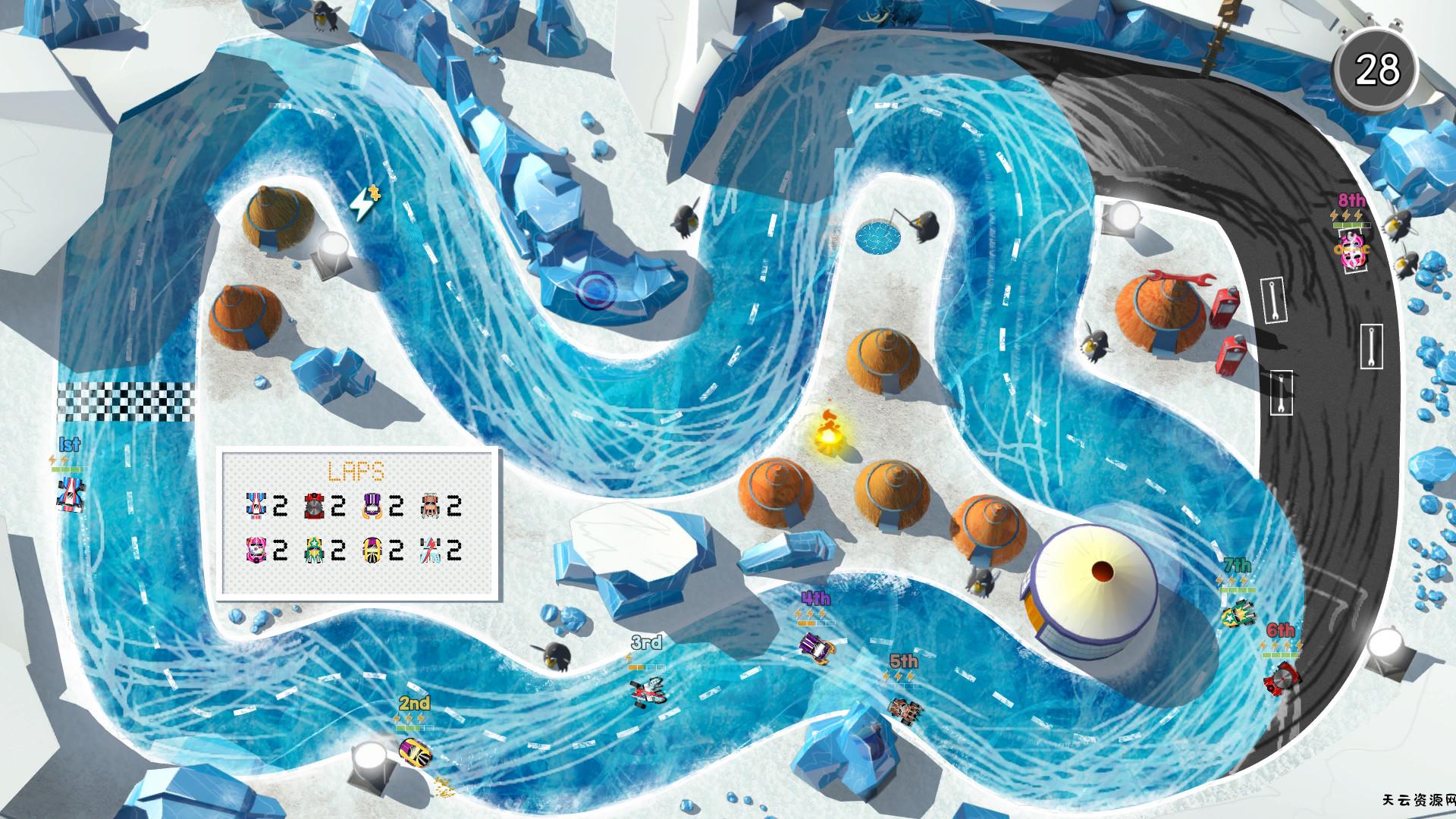 游戏规则简单粗暴到极致:你的赛车没有刹车键!控制方向、油门和飘逸,在错综复杂、危机四伏的赛道上,依靠纯粹的预判、精准的过弯角度和一点点运气,冲向终点。赛道设计充满了各种刁钻的弯道、跳跃板和致命障碍,你需要像个真正的“莽夫”一样,在高速中规划路线,用车身摩擦护栏来减速,甚至把对手撞出赛道来确保自己的领先地位。色彩鲜艳的卡通画面和动感十足的音乐,让每一次碰撞和翻车都充满了搞笑的戏剧性,非常适合与朋友来一场欢乐又刺激的本地多人对战。