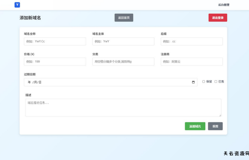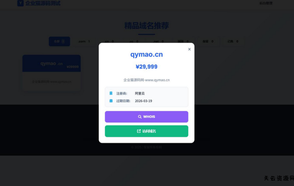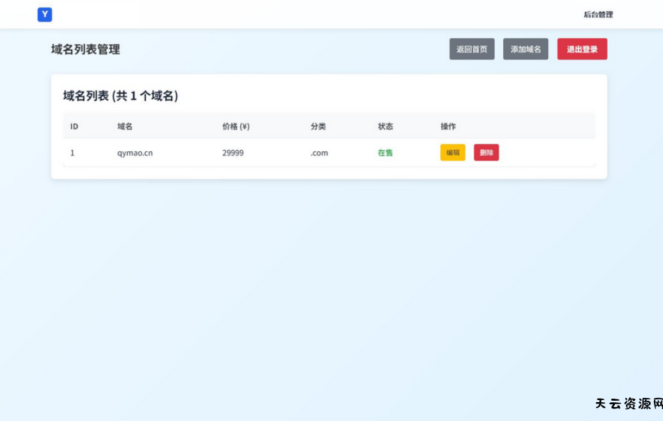 域名出售系统 带简易后台管理的米表系统 自适应页面
