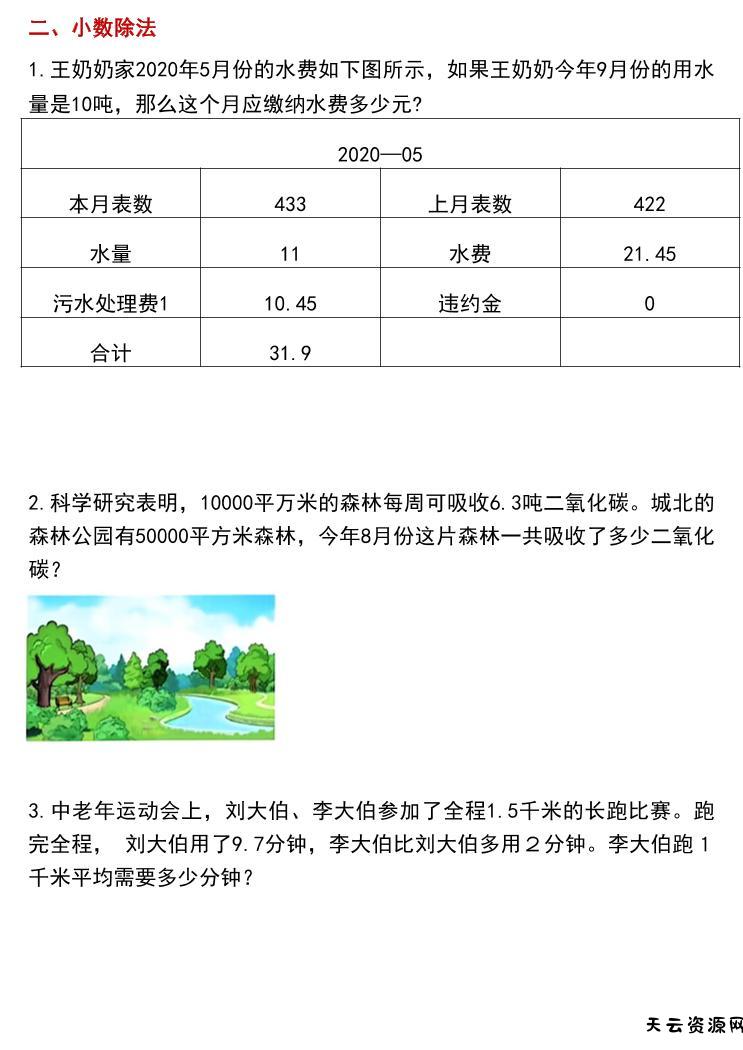 五上数学常考应用题专项练习题(含答案12页)-天云资源网