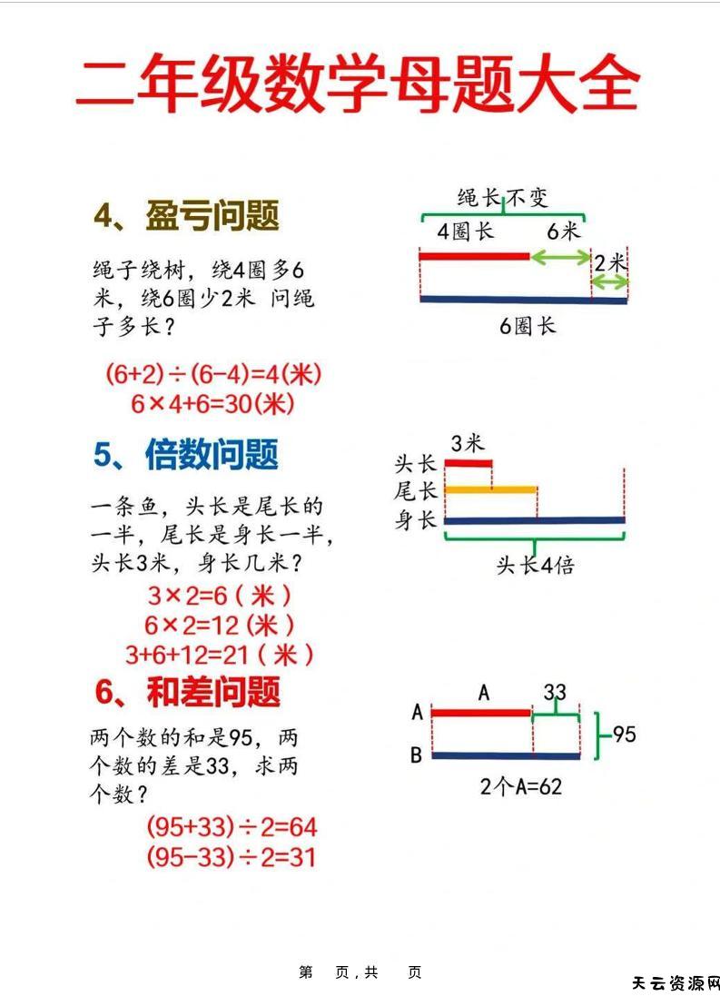 二年级上数学母题大全+必做奥数思维题9套(含答案25页)-天云资源网