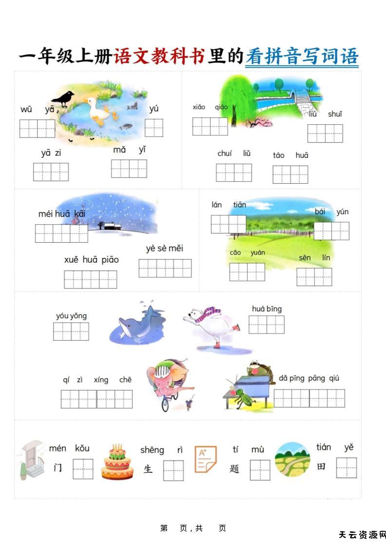 新一上语文教科书里的看拼音写词语(16页)-天云资源网