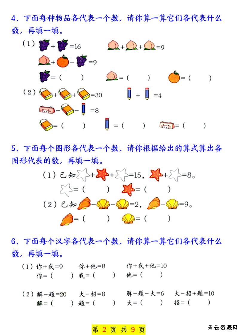 新一上数学奥数附加思维训练七大专项练习(9页)-天云资源网