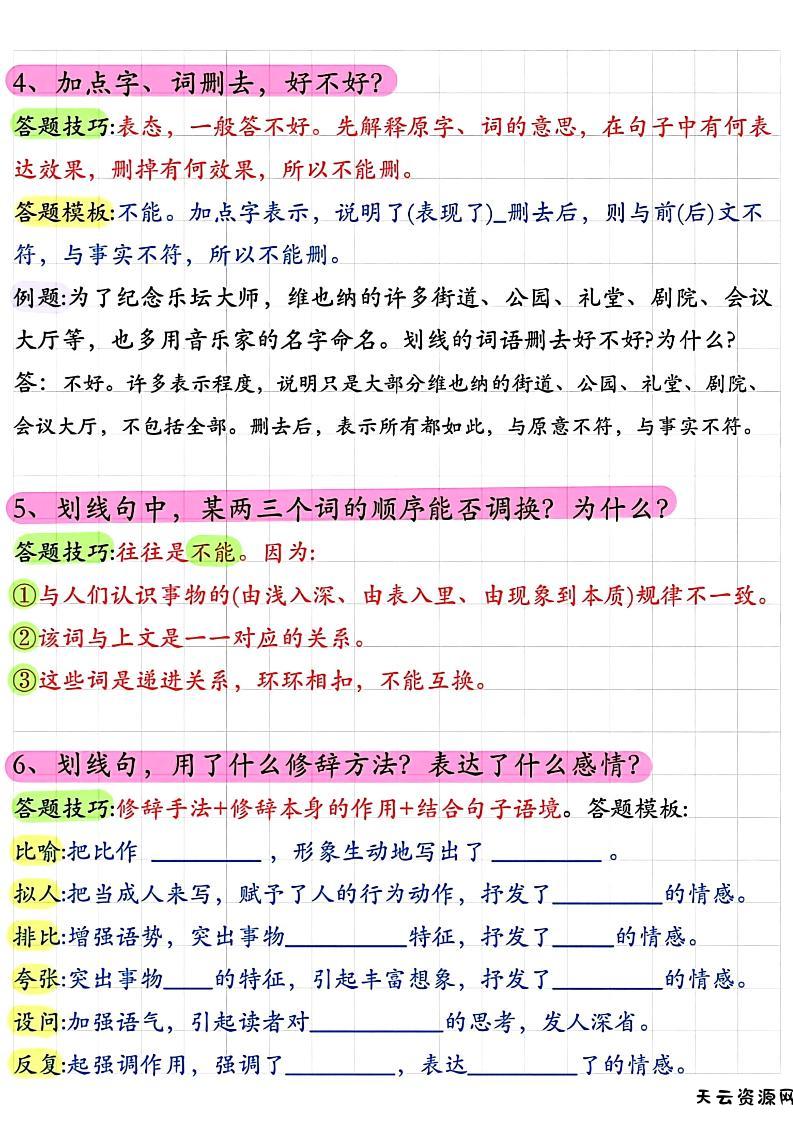 小学阅读理解常考题型答题技巧-小升初语文-天云资源网
