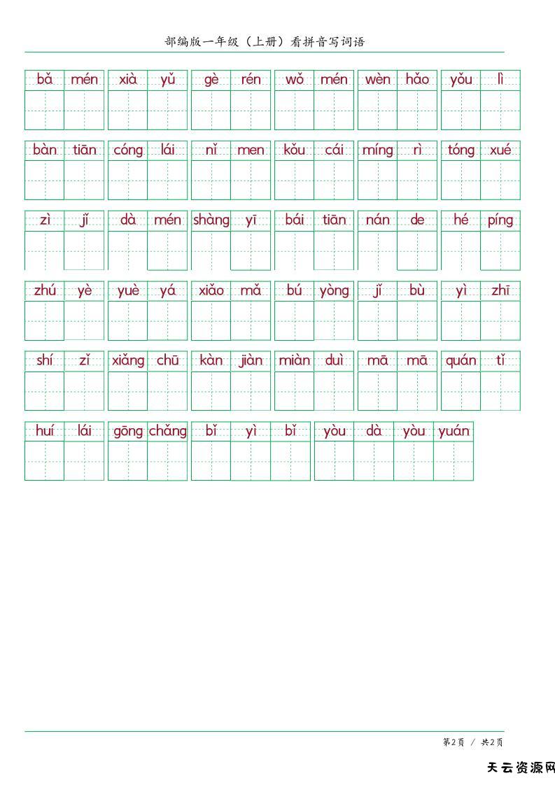 一上语文看拼音写词语-天云资源网