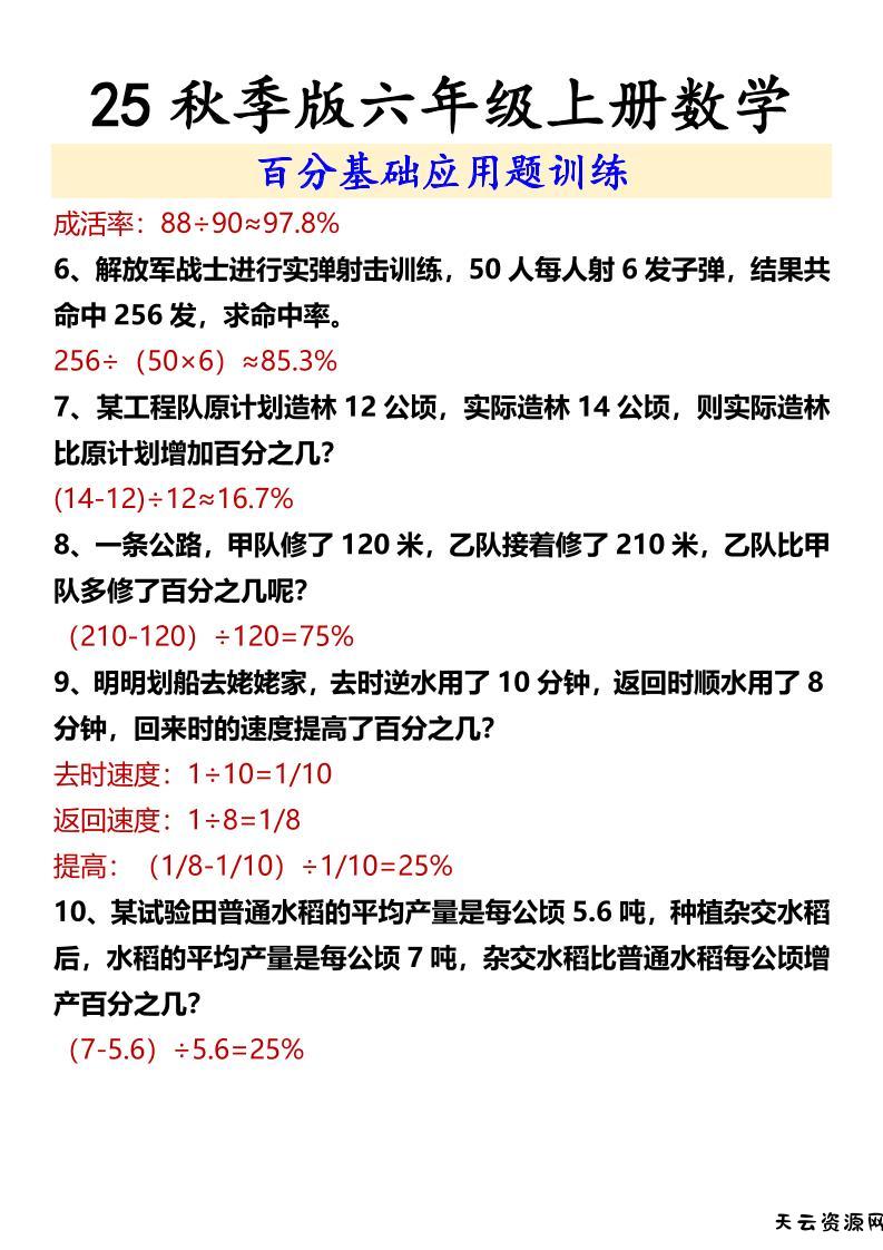 【2025秋新版】六年级上册数学百分基础应用题训练-天云资源网
