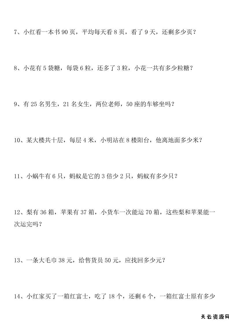 【2025秋新版】二年级数学上册常考应用题125道-天云资源网