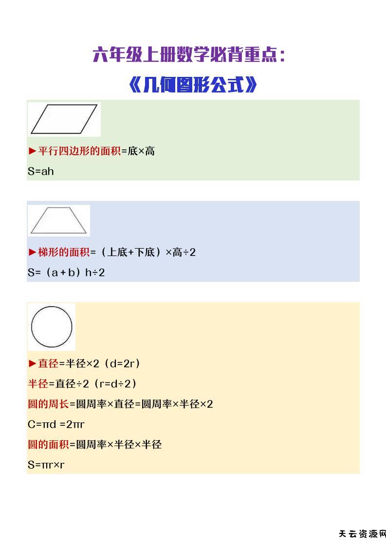 【2025秋新版】六年级上册数学必背几何图形公式大全-天云资源网