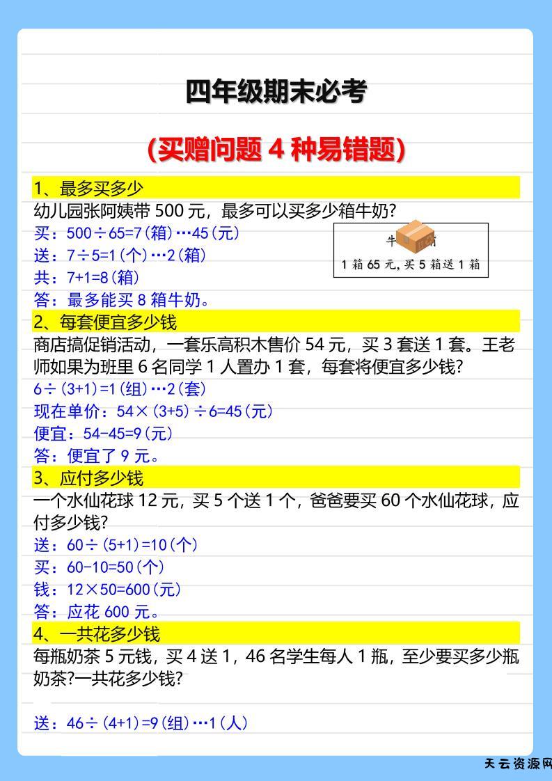 【2025秋新版】四年级期末必考买赠问题4种易错题-四上数学-天云资源网