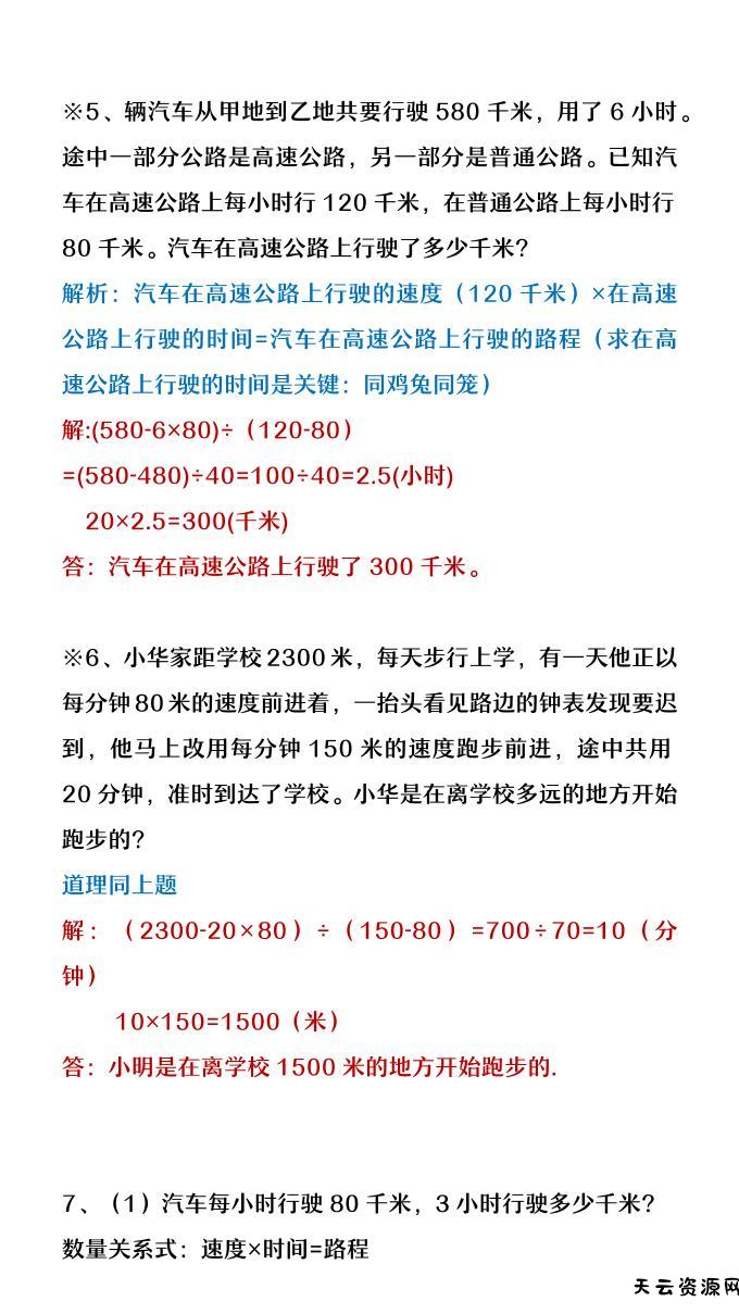 【2025秋新版】四年级数学上册行程问题应用题-天云资源网