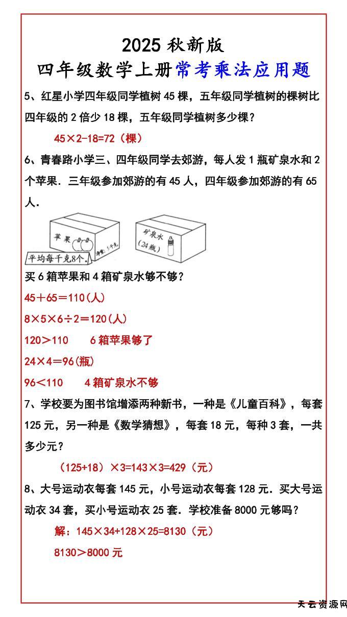 【2025秋新版】四年级数学上册常考乘法应用题-天云资源网