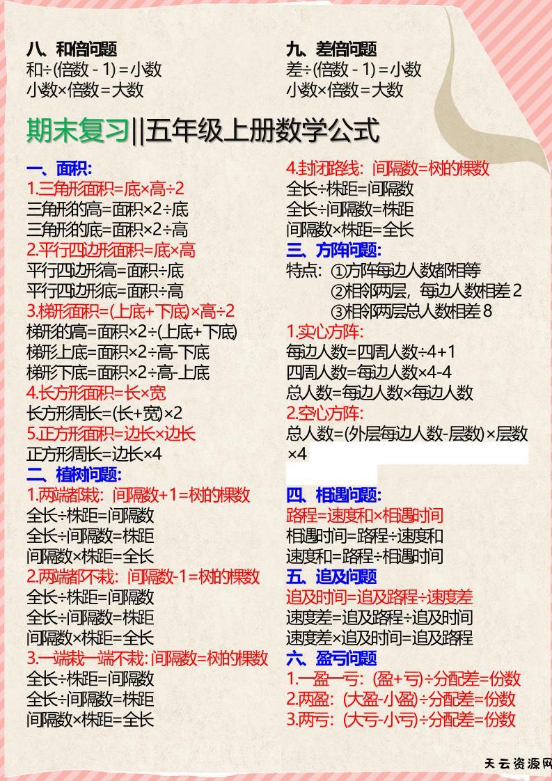 【2025秋新版】五年级上册必备数学公式-天云资源网