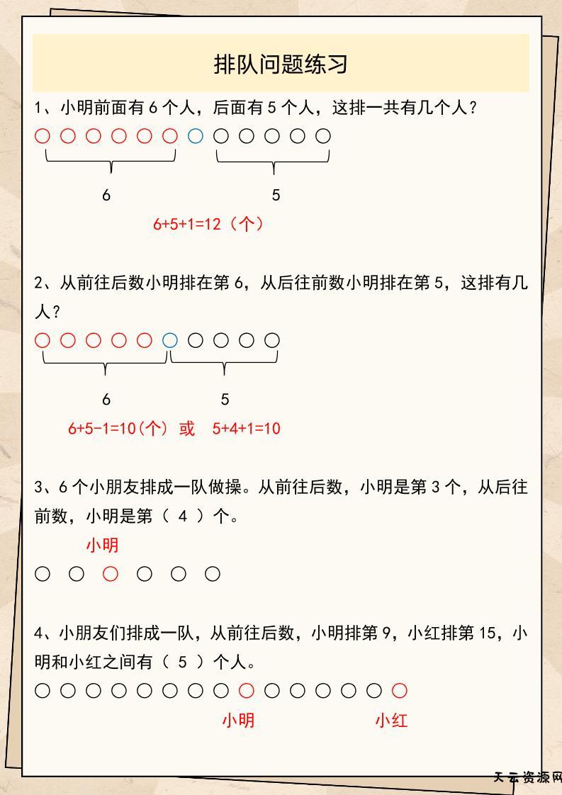 【2025秋新版】一年级数学上册期末复习:排队问题-天云资源网