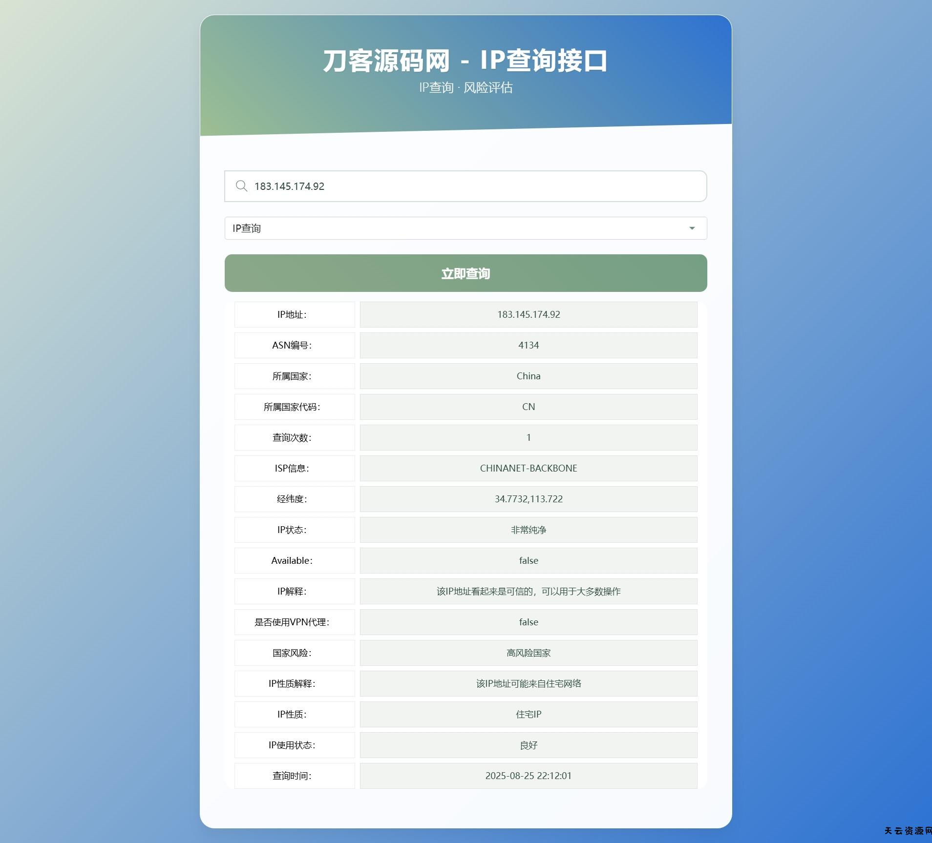 最新刀客IP地址信息查询系统源码_含API接口_首发_自适应手机端