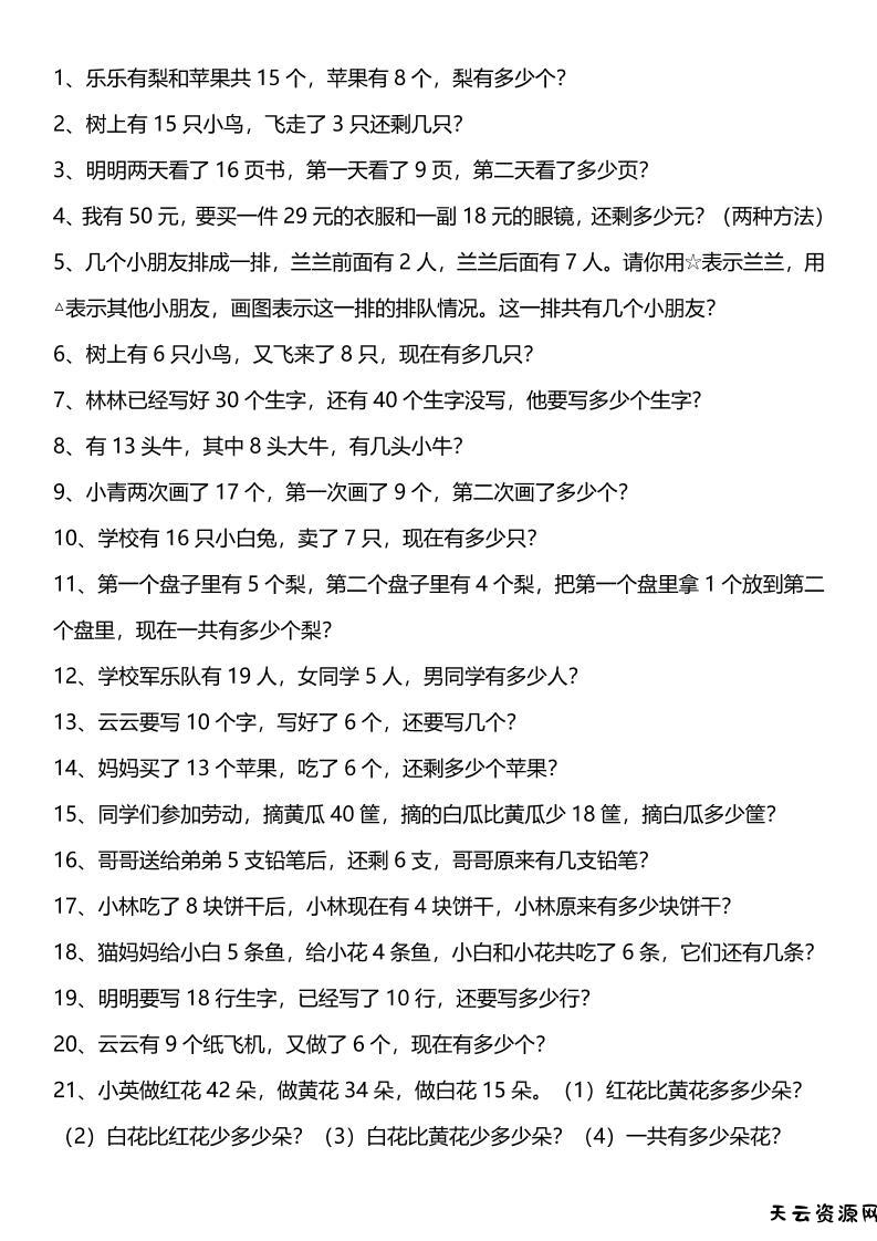 【2025秋新版】一年级上册口算综合练习题100道+应用题100道-一上数学-天云资源网