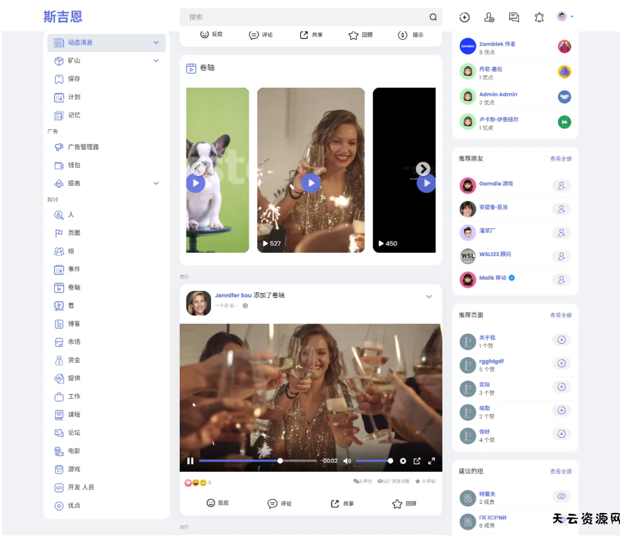 Sngine 4.0.4是一款海外社交平台的PHP源码,包括多语言支持、短视频和博客订阅等特性,类似推特的操作方式。用户可添加好友、关注、分享内容、接收通知,支持YouTube、Vimeo等链接分享,还有隐私设置、验证徽章、实时搜索、
