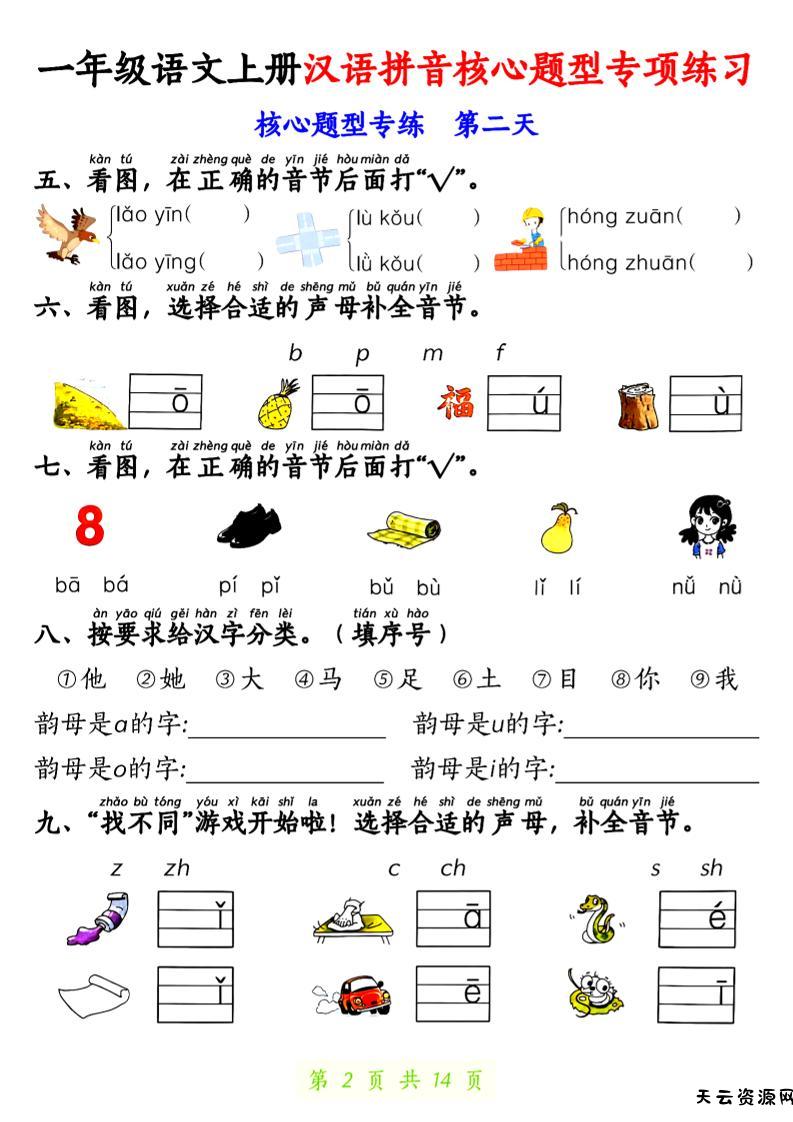 一上语文【拼音核心题专练14天】-天云资源网