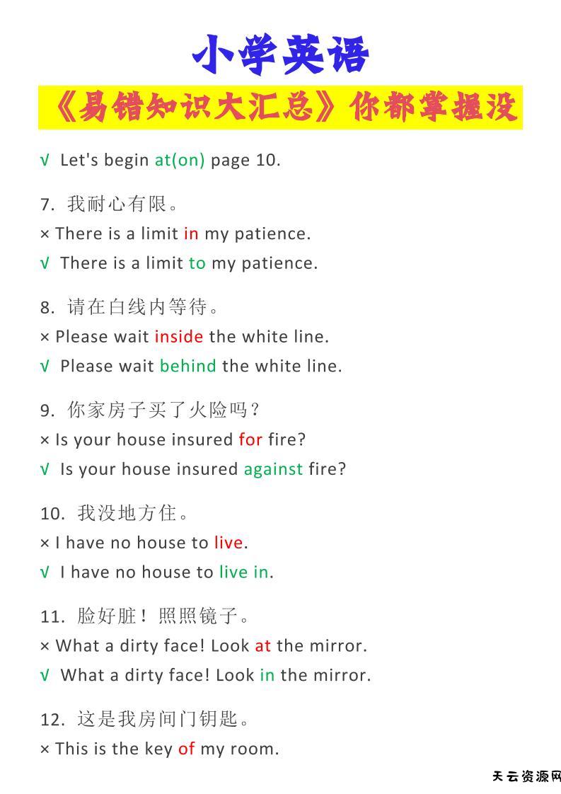 【2025秋新版】小学英语易错知识大汇总,看看你都掌握了没?-小升初英语-天云资源网