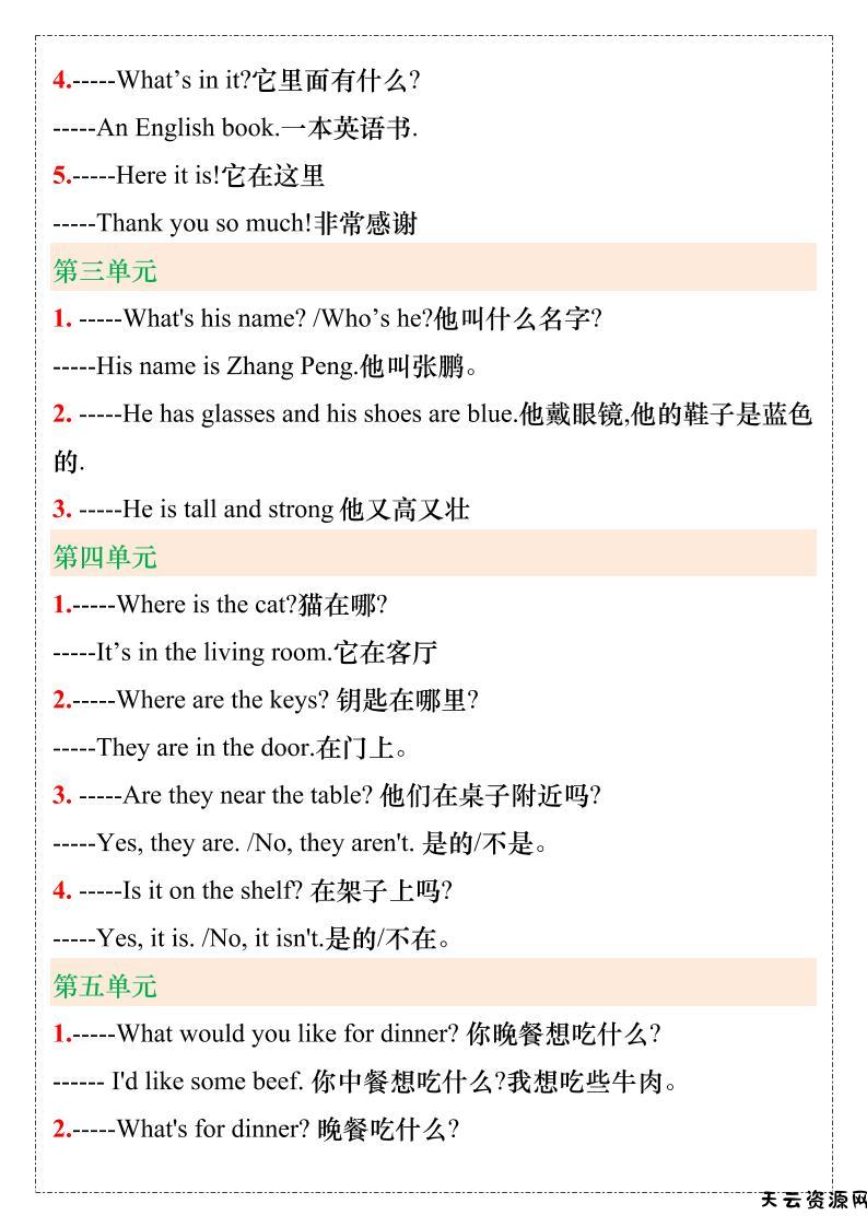 【2025秋新版】四年级英语上册重要句型汇总-天云资源网